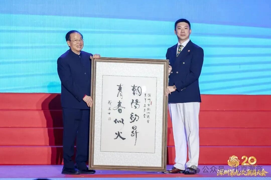 蔡东士先生还将亲笔题写的“朝阳初昇,青春似火”赠予青委会主席孙志超先生,寄予对潮商新生代的美好期许。