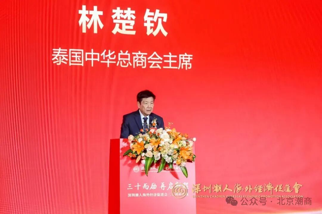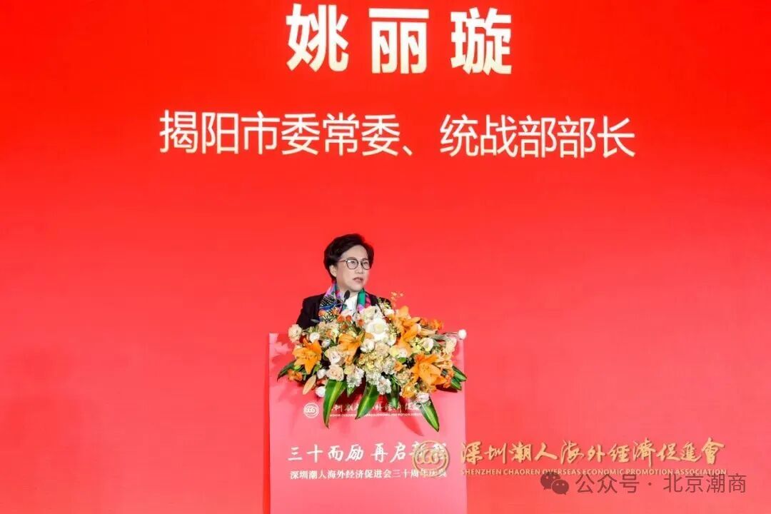 深圳市委统战部副部长、深圳市工商联党组书记刘俊琳,揭阳市委常委、统战部部长姚丽璇,深圳市委原副书记庄礼祥,泰国中华总商会主席林楚钦,泰国前副总理、泰中友好协会会长功·塔帕朗西阁下等嘉宾先后发表讲话,对深圳潮人海外经济促进会三十年来取得的成绩表示祝贺。