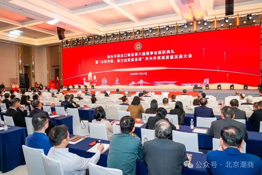 聚力凝心商通四海,携侨共进誉满五洲。2025年11月27日,汕头市进出口商会第六届理事会就职典礼暨“以侨为桥,助力汕货卖全球” 共兴外贸高质量发展大会在汕头万豪酒店隆重举行。来自全球40多个侨团200多位乡贤与会员代表一道,近千人齐聚鮀城,乡音乡情交融,合作共识凝聚,共话桑梓情、共商发展计、共绘汕头外贸高质量发展新图景。
