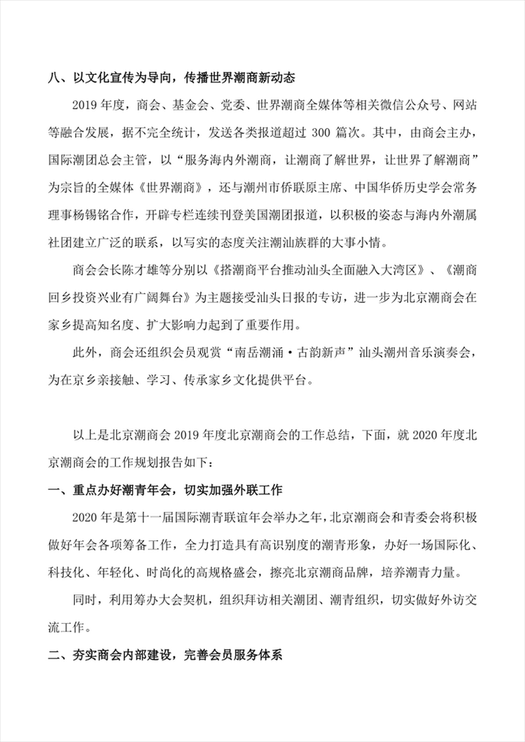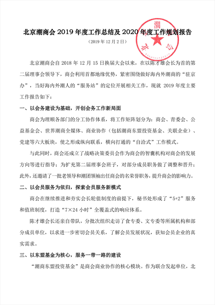 北京潮商会2019年度工作总结与2020年度工作规划报告