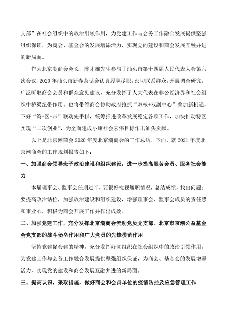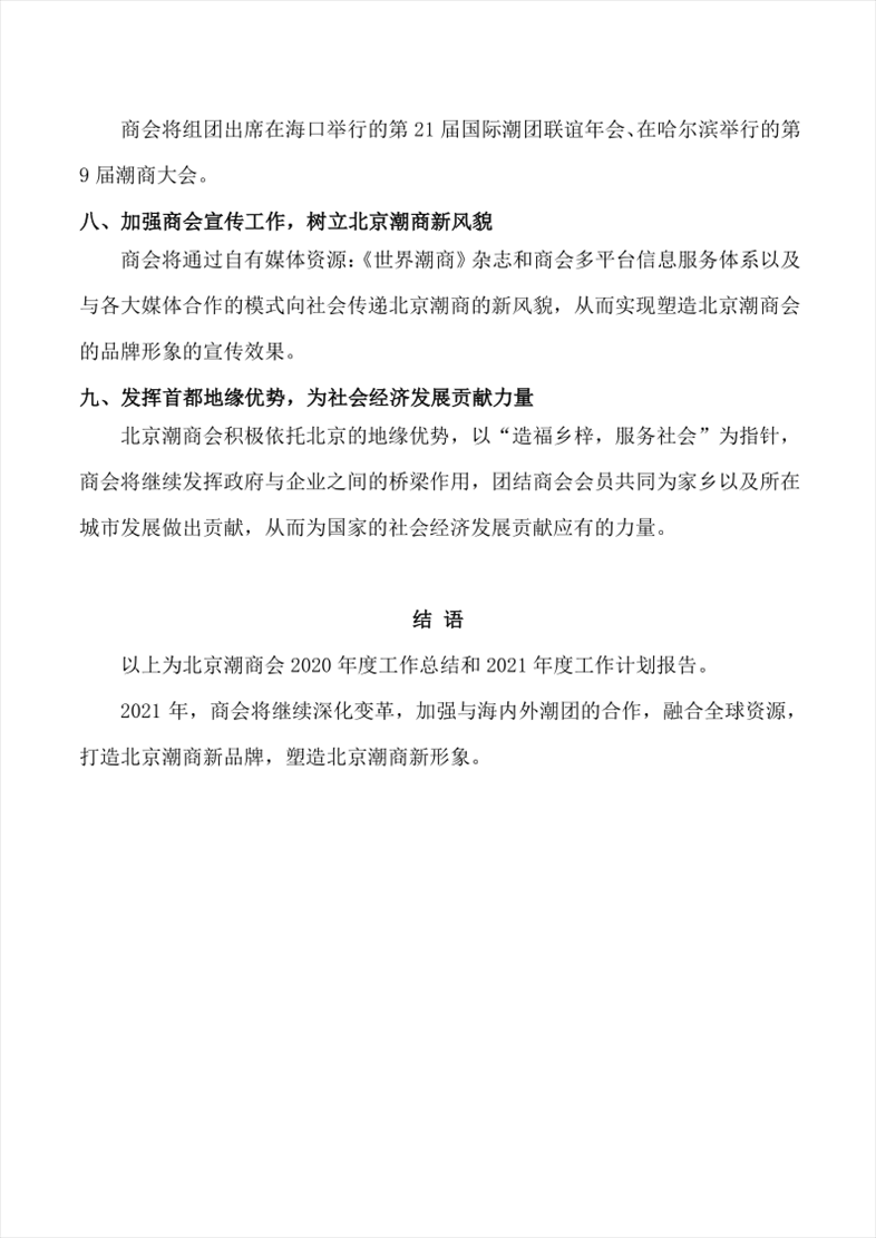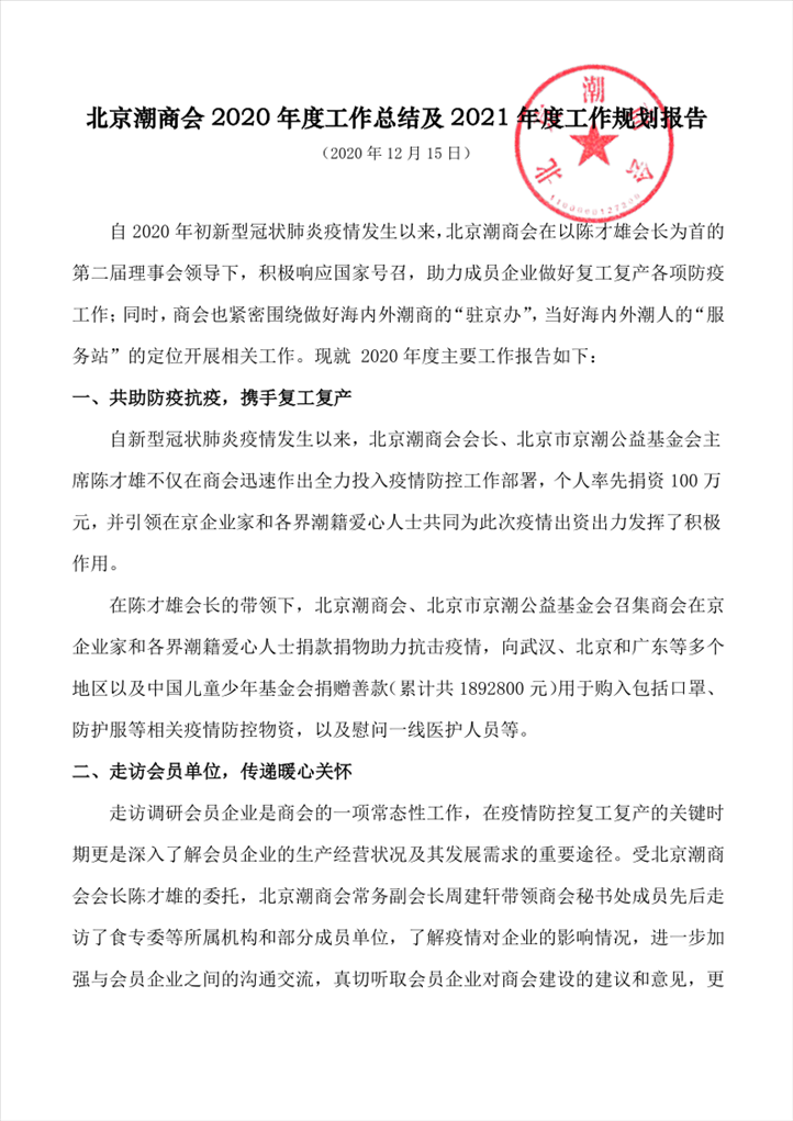 北京潮商会2020年度工作总结及2021年度工作规划报告