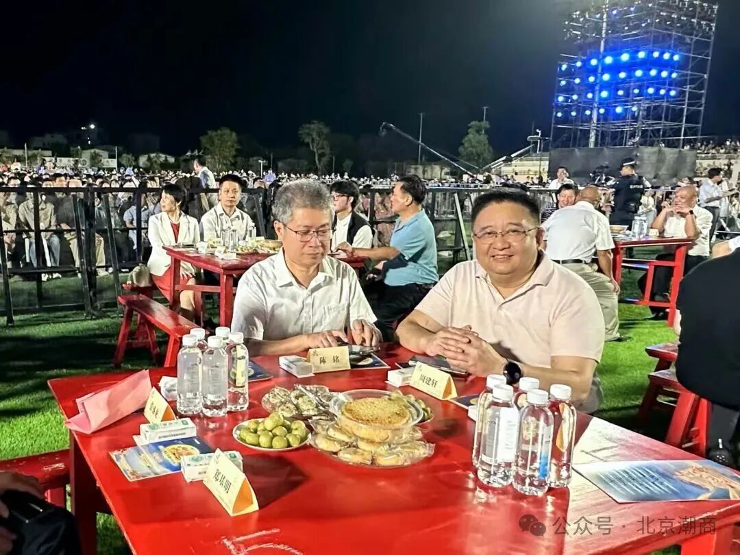 当天晚上,陈才雄会长、周建轩驻会会长还应邀参加了在潮阳体育中心举办的“明月共潮生 —2025 大湾区非遗中秋晚会”录制。这场融合“团圆味、非遗魂、侨乡情、仪式感、时代感”的文化盛会,将于10月6日中秋夜在广东卫视及新媒体矩阵、大湾区卫视播出,为全国观众奉上一场兼具历史底蕴、湾区特色与科技感的传统文化盛宴。