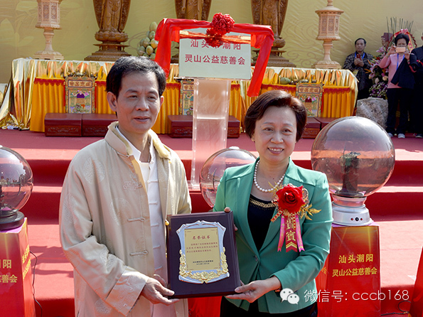 灵山公益慈善会成立仪式于灵山寺山门菩提广场隆重举行,国家宗教局吕晋光司长、广东省政协民宗委领导杨兴锋主任、罗继东主任、刘文炎主任、许广福巡视员、曾晓辉副主任、马建钊副主任;汕头市委常委、统战部长马逸丽、汕头市副市长赵红、潮阳区委书记陈新造、区委区政府等各级党政领导共同出席,汕头市人大代表、北京潮商会常务副会长、北京潮人海外联谊会副会长陈才雄作为主要捐赠人出席本次活动,并被聘为灵山公益慈善会名誉会长。