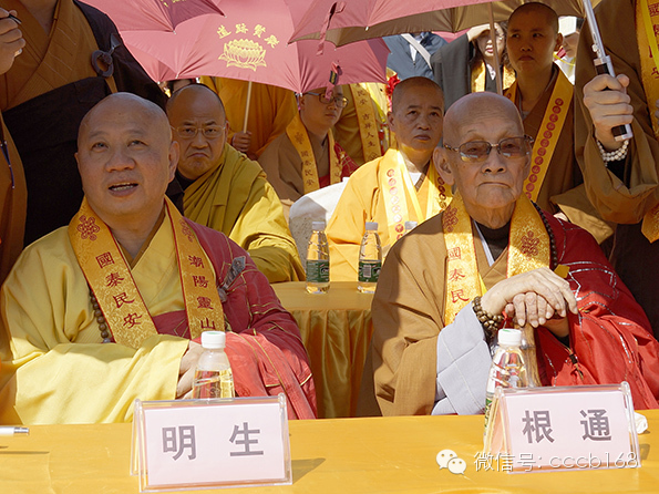 诸山长老、诸位法师、十方信众等共同见证了这一庄严时刻;耀瑜大和尚、吕晋光司长、罗继东主任、明生长老、赵红副市长、潮阳区黄志荣副区长等先后致词;明生长老在致词中说道:“今日阳光普照,海众云集;在此隆重举行灵山护国禅寺灵山公益慈善基金会成立暨耀瑜大和尚升座庆典,是广东省佛教界的一件大喜事,灵山护国禅寺是岭东四大古刹之一,是唐朝大颠禅师开山的道场,历史悠久、高僧辈出,今日耀瑜大和尚升座,是众望所归,龙天推出,特感恩十方三宝的加持摄受,感恩灵山寺历代祖师大德、历代住持的加持福佑,感恩根通长老、祜巴龙庄勐长老、妙江长老、道慈长老、正慈长老等诸山长老、各位法师、各位领导、十方信众莅临灵山护持道场,特别感恩各级政府部门对佛教慈善事业的大力支持;慈善是佛教的根本宗旨,佛陀创立圣教,其宗旨就是‘庄严国土、利乐有情’,成立灵山公益慈善基金会更能让佛教的慈善理念普济众生,希望慈善会今后在耀瑜大和尚的带领之下,不断地完善基金会的理念制度等,将佛教慈善事业发扬光大、为世界和平、国家昌盛、人民幸福做出应有的贡献。