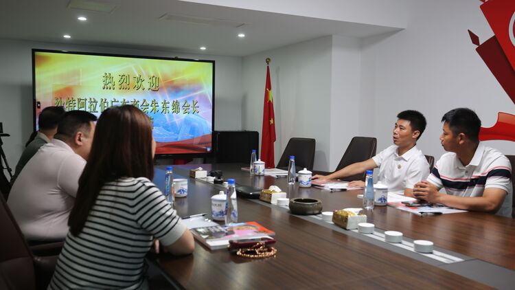 交流会上,双方一同观看了北京潮商会宣传片,朱东绵会长称赞北京潮商会在会务、公益、党建等各方面所做的工作很值得学习,并介绍了沙特阿拉伯王国的概况以及沙特广东商会的基本情况。表示希望加强两商会间的联系,共同助推中沙两国在经贸交流、产业合作、科技发展、文化教育等领域的交流合作,为在沙华人华侨的工作及生活提供支持与帮助。