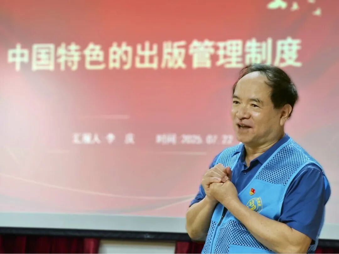 课程伊始,李庆同志凭借丰富的经验,以通俗易懂的语言,系统讲解了出版行业的基本概念和法律框架,帮助听众建立知识基础。随后,他从出版社的创办与分类体系、内容审查与出版管理、监督机制等维度展开分析,并结合中外出版模式对比,生动阐释了中国特色的出版管理制度。