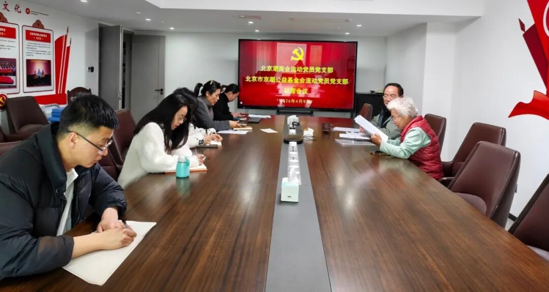 2026年4月9日,北京潮商会流动党员党支部与北京市京潮公益基金会流动党员党支部召开联席会议,专题学习中共北京市行业协会商会综合委员会《关于扎实开展树立和践行正确政绩观学习教育的通知》以及《2026年意识形态和网络意识形态工作任务清单》等重要文件精神。