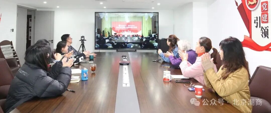 北京潮商会组织相关人员集中收看第五届北京社会组织推介活动的现场直播,北京潮商会副会长柯克亚、彭微微观看直播。