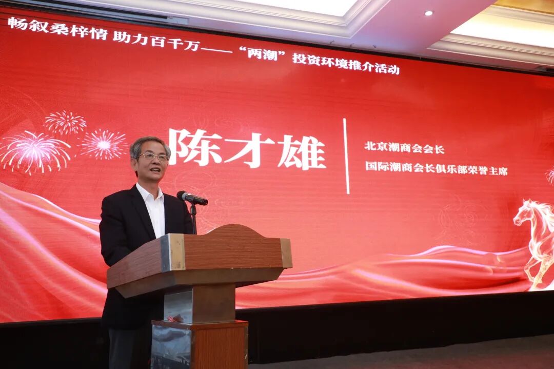 陈才雄会长在致辞中指出,潮商走遍世界,根永远在潮汕。潮阳、潮南是我们共同的家乡,人文底蕴深厚、产业基础扎实、营商环境持续优化,正处在高质量发展的黄金机遇期,是投资兴业、回报桑梓的最佳热土。